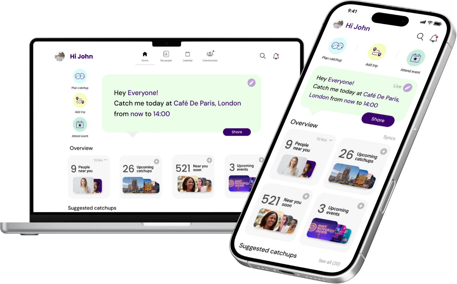 UBQT effortlessly connects your communities with smart notifications about who is nearby and plenty of easy ways to plan catchups - both spontaneously and in the future.